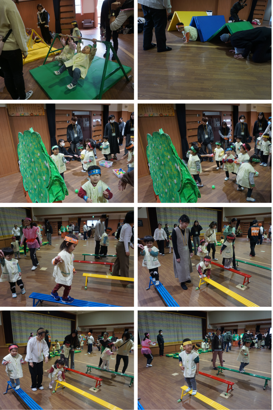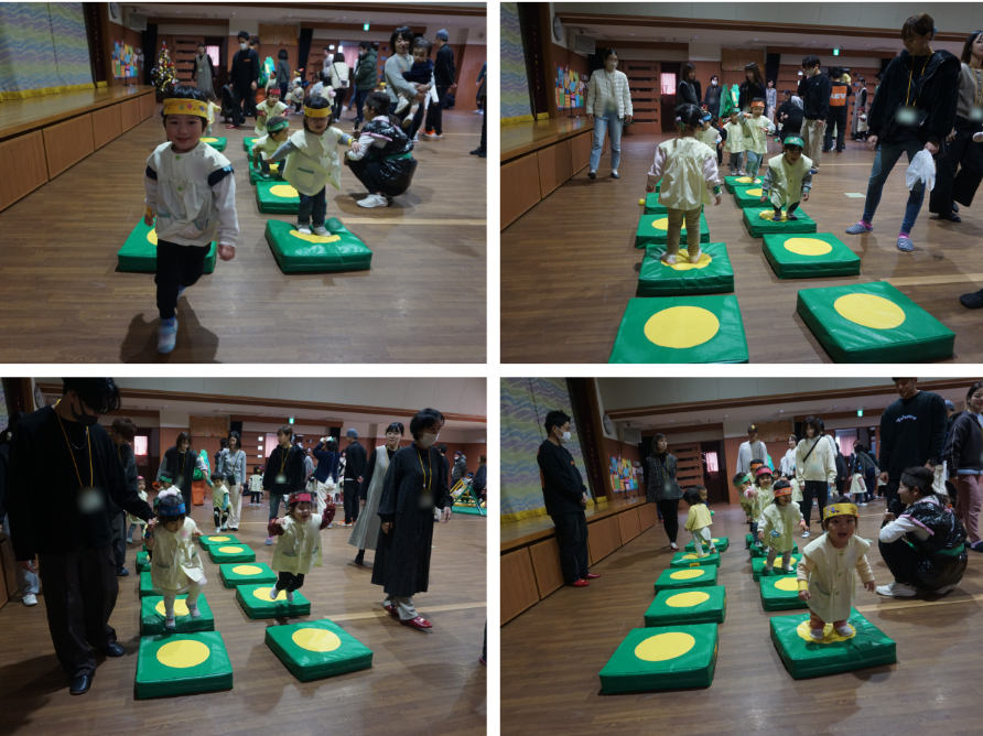 お家の人に応援してもらってトンネルくぐりや橋渡り、いろいろな技にチャレンジしたね!