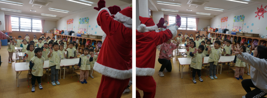 楽しそうに踊るサンタさんを見て、一緒に踊り出していたよ!