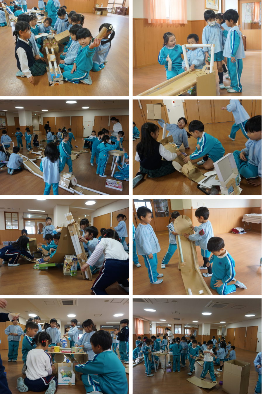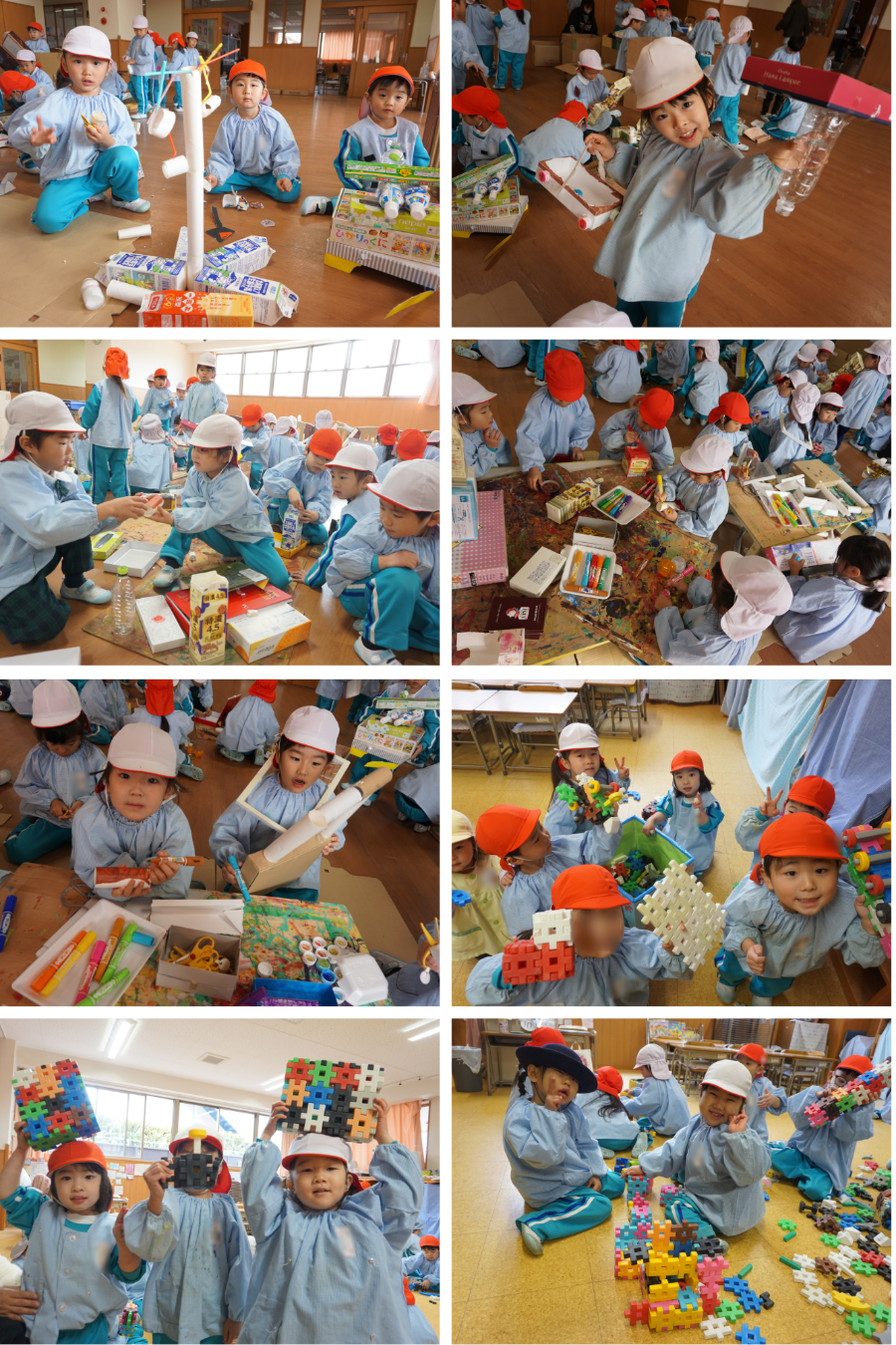 自分の考えだけでなく、お友達の考えも聞きながら一緒に作っている姿はさすが年長さん✨