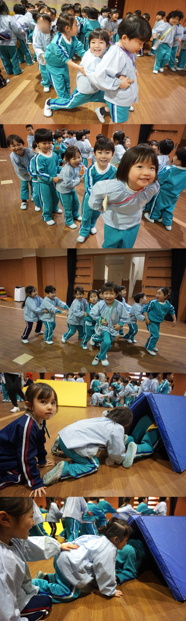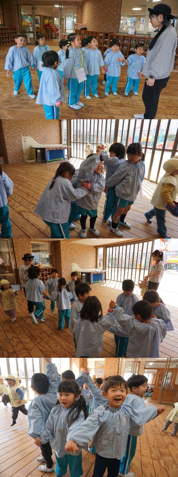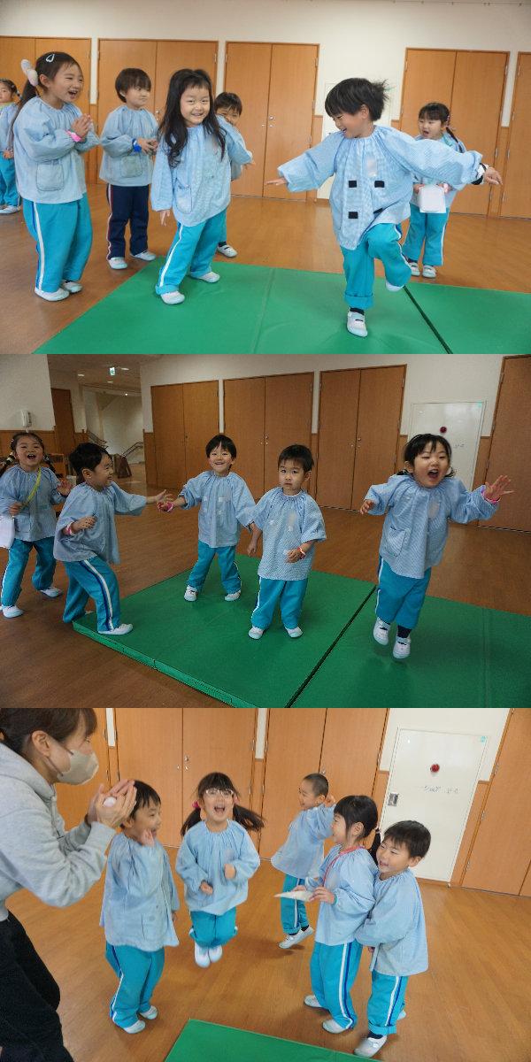 今日は講堂に集まって、元気いっぱい自分達のグループ名を言った後、触れ合い遊びもしたよ🌟