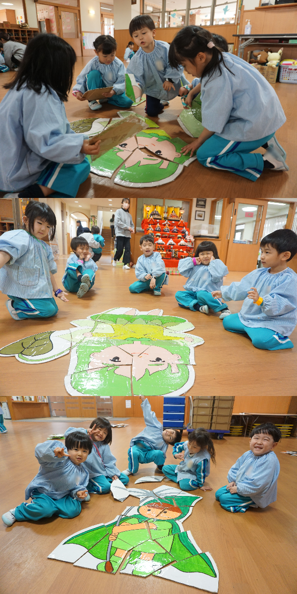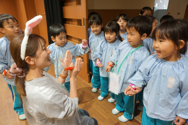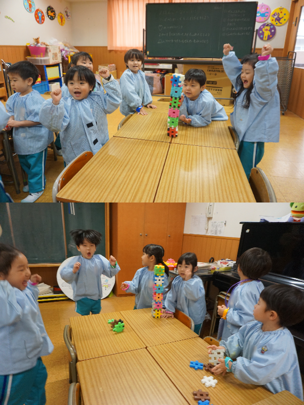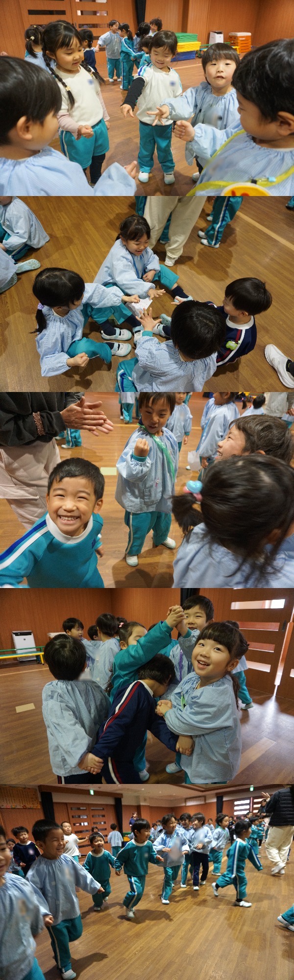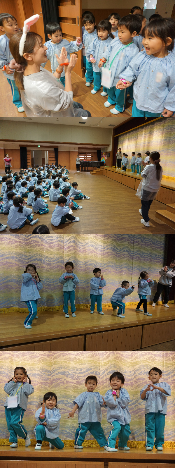 今日は講堂に集まって、元気いっぱい自分達のグループ名を言った後、触れ合い遊びもしたよ🌟