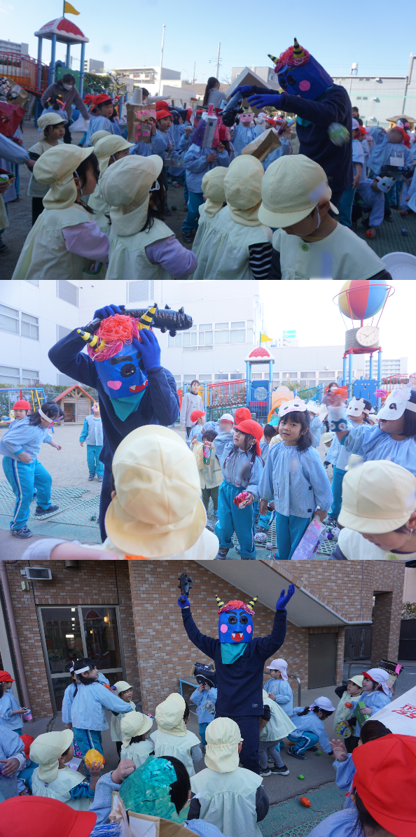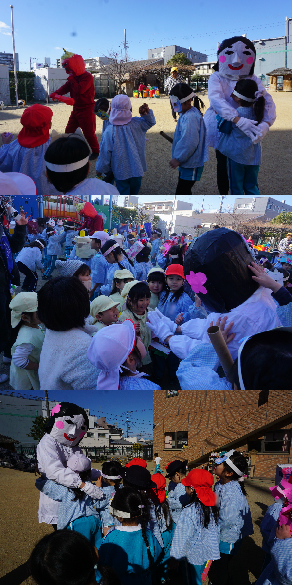 それぞれの保育室で朝の活動をしていると・・・鬼がやってきました!