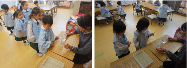 水に浮く物・沈むものって何かな~?と予想して実験を楽しみました🌟