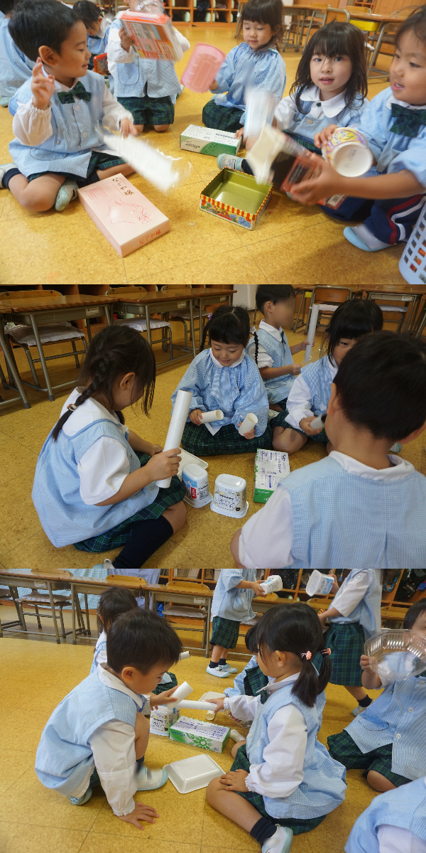 廃品を使って、どんな音が鳴るか遊んでみよう!