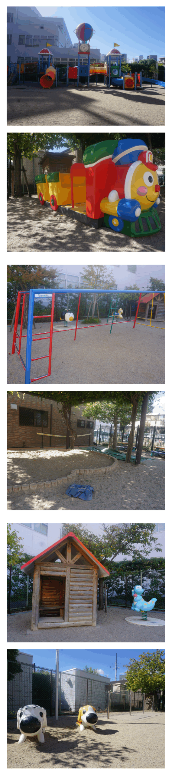 朝陽ヶ丘幼稚園には大型遊具や汽車、砂場など